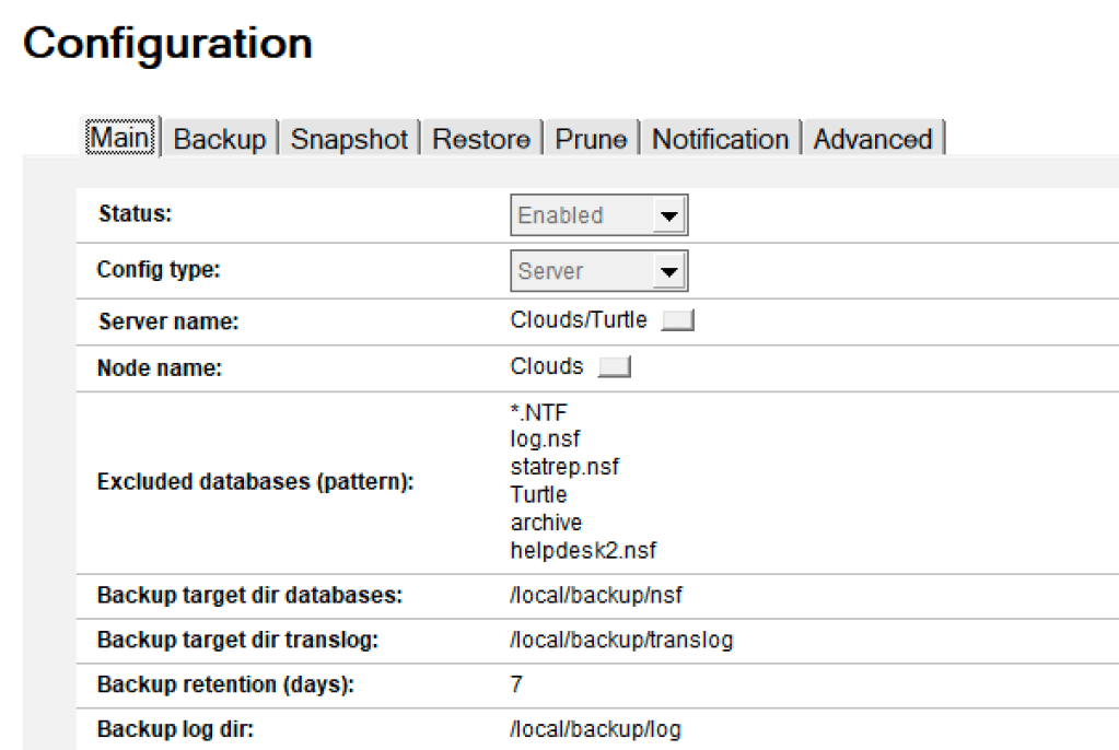 The configuration is all done through a new database called dominobackup.nsf which is automatically created on a server when you type “Load Backup” on the console (if it doesn’t already exist). Once done you can open dominobackup.nsf on the server. There is nothing special about this database other than its name so you can replicate it to other servers once it’s set up and if you want the same configuration.